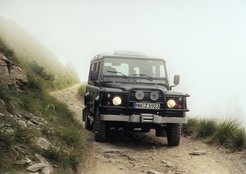 Seit Dezember 2001 haben wir nun auch einen Landy hier in Deutschland. Es ist ein DEFENDER 110 Station mit dem 300 Tdi Motor. Er ist Bj. 1998 und hat 120.000 km runter. Ich kaufe ihn von Privat nahe der hölländischen Grenze. 400 km fahre ich nach Hause ohne Probleme und 500 m vor unserer Haustür fährt mir ein Nachbar links in die Front. Ich hätte ihn umbringen können.