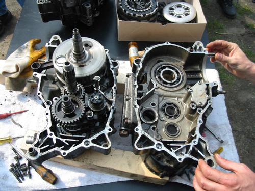 Dann haben wir zwei leere Motorgehäuse mit Getriebe und Kurbelwelle