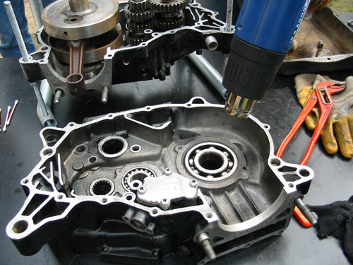 Um die Kurbelwelle, oder auch vorher die Lager einzusetzen wärmen wir