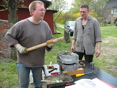 Erst haben wir einen Motor von Christian mir meinem neuen Werkzeug