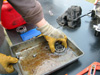in eine Schale geben und das Lager im Benzin hin- und herschwenken, ohne