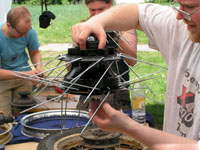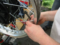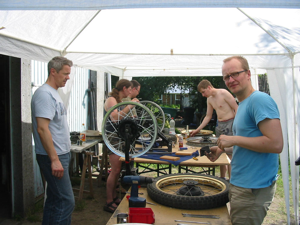 Thema des WorkShops am 28.5.2005 war das Einspeichen und Zentrieren von Vorder- und Hinterrädern der XT 500.