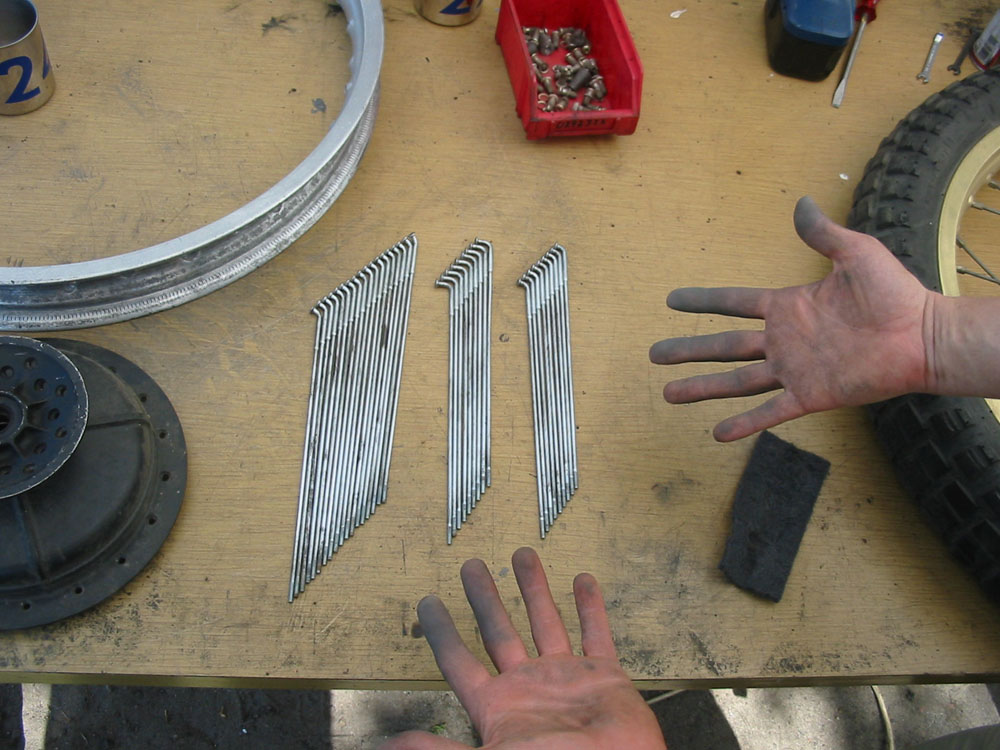Aber damit ist es lange noch nicht getan. Ich habe hier Hinterradspeichen